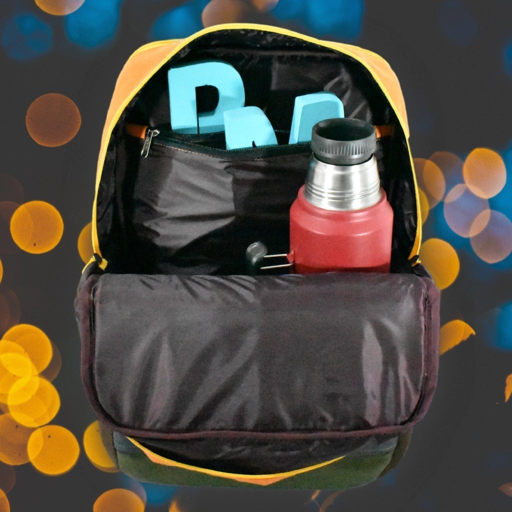 💖 Mochila porta notebook naranja oliva y marron chocolate con 2 bolsillos frontales, uno estilo sobre y otro con cirre con insercion de telar. Tiene doble cierre para llevar la notebook 💻